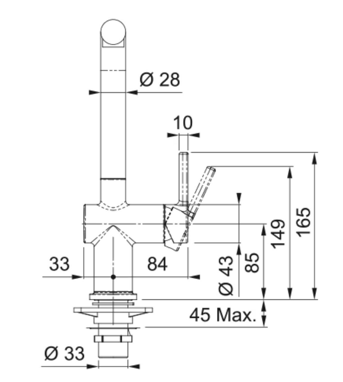 - Высота излива 283