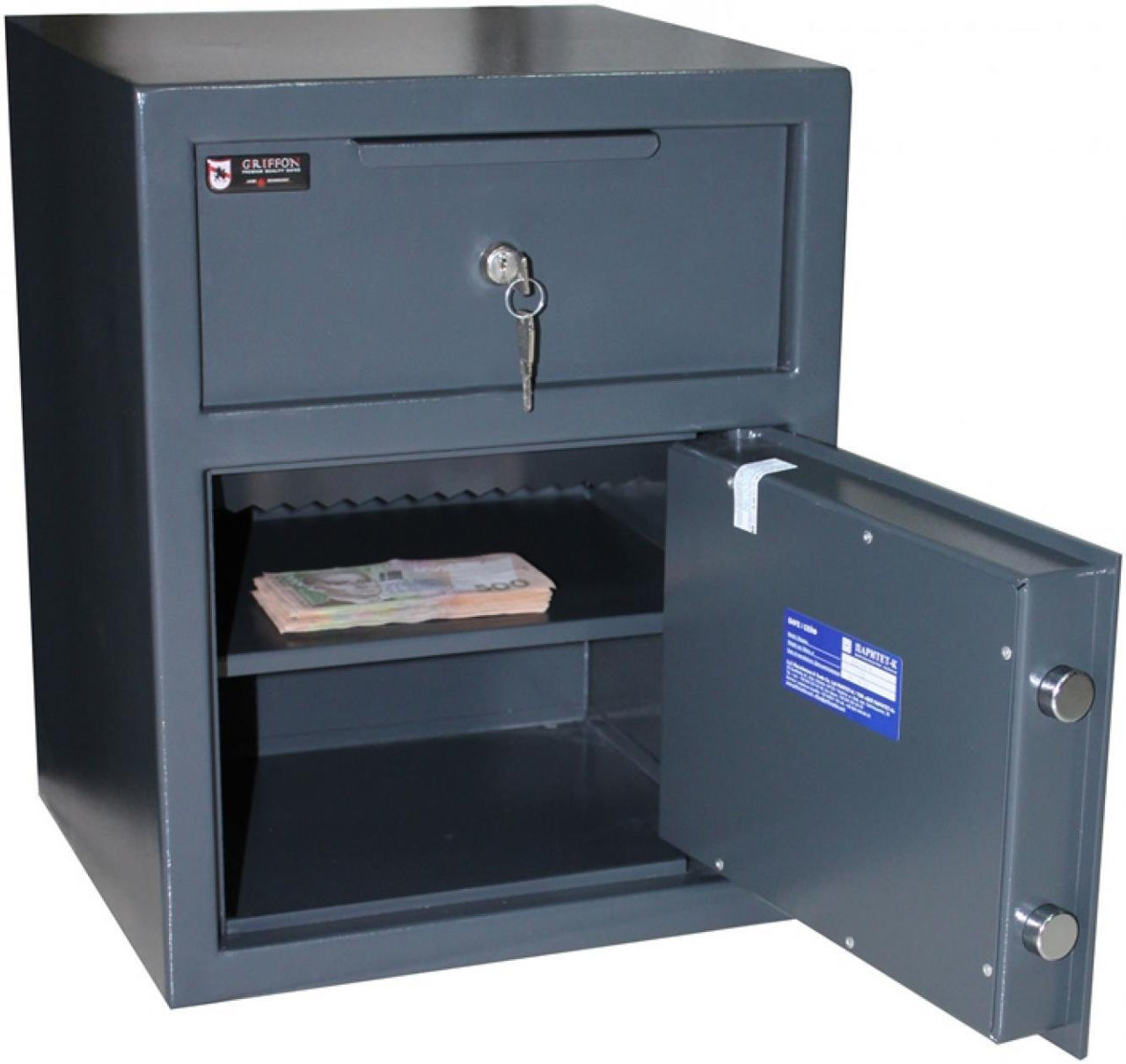 Destinat: pentru bani;pentru depozitare / Form factor: încorporat în mobilă;separat / Tip lacăt: cu cheie / Material carcasă: oțel