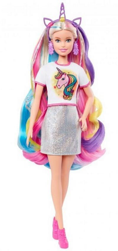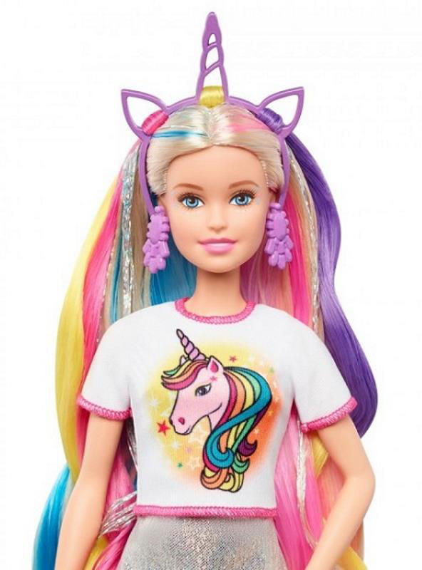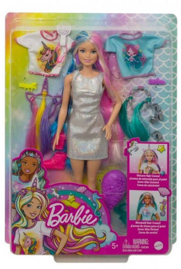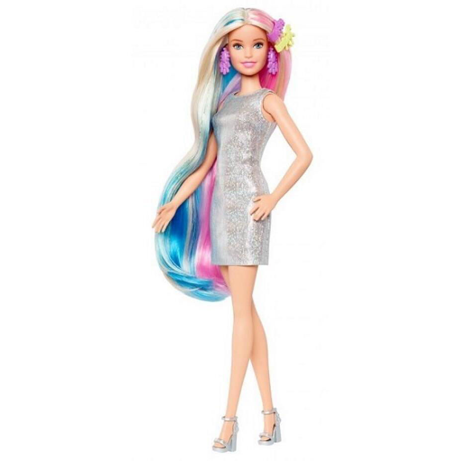 Include o păpușă Barbie cu haine și accesorii, 2 tricouri imprimate, o perie de păr, 2 cercuri de păr colorate și două agrafe pentru copii pentru a crea coafuri fantastice, plus o pereche de adidași pentru a extinde opțiunile de poveste și imagini. Copiilor între 3 și 7 ani le va plăcea să schimbe aspectul păpușii Barbie și să o ajute să strălucească! Păpușa nu poate sta singură. Culorile și accesoriile pot varia.
