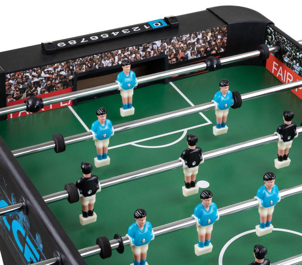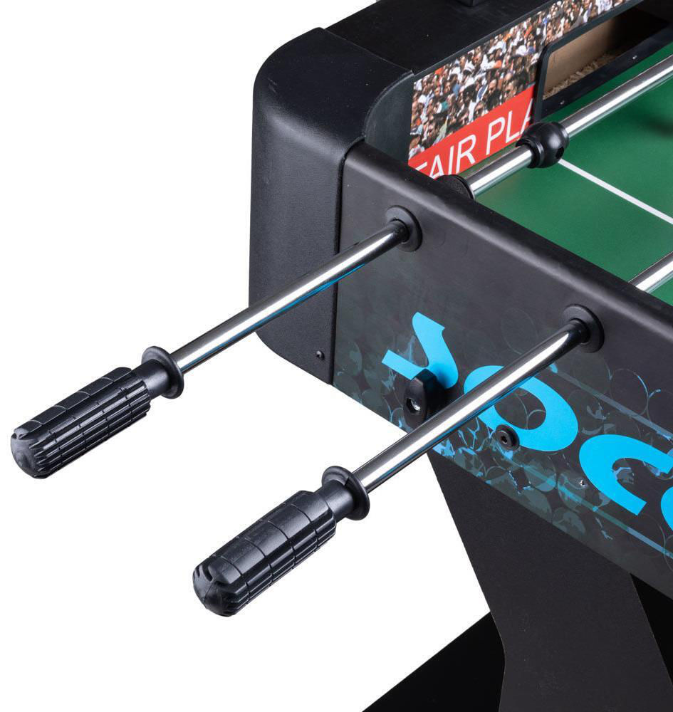 Printre alte avantaje se numara o suprafata de joc de 102,2 x 58 cm, gauri de returnare a mingii si tabele de marcaj manuale pe fiecare parte. In plus, cei 22 de jucatori si tijele din otel cromat cu manere ergonomice asigura caracteristici de joc remarcabile. Constructia sa stabila si caracteristicile de joc uimitoare fac din Masa de fotbal pliabila inSPORTline Almorgan un produs popular si cautat.