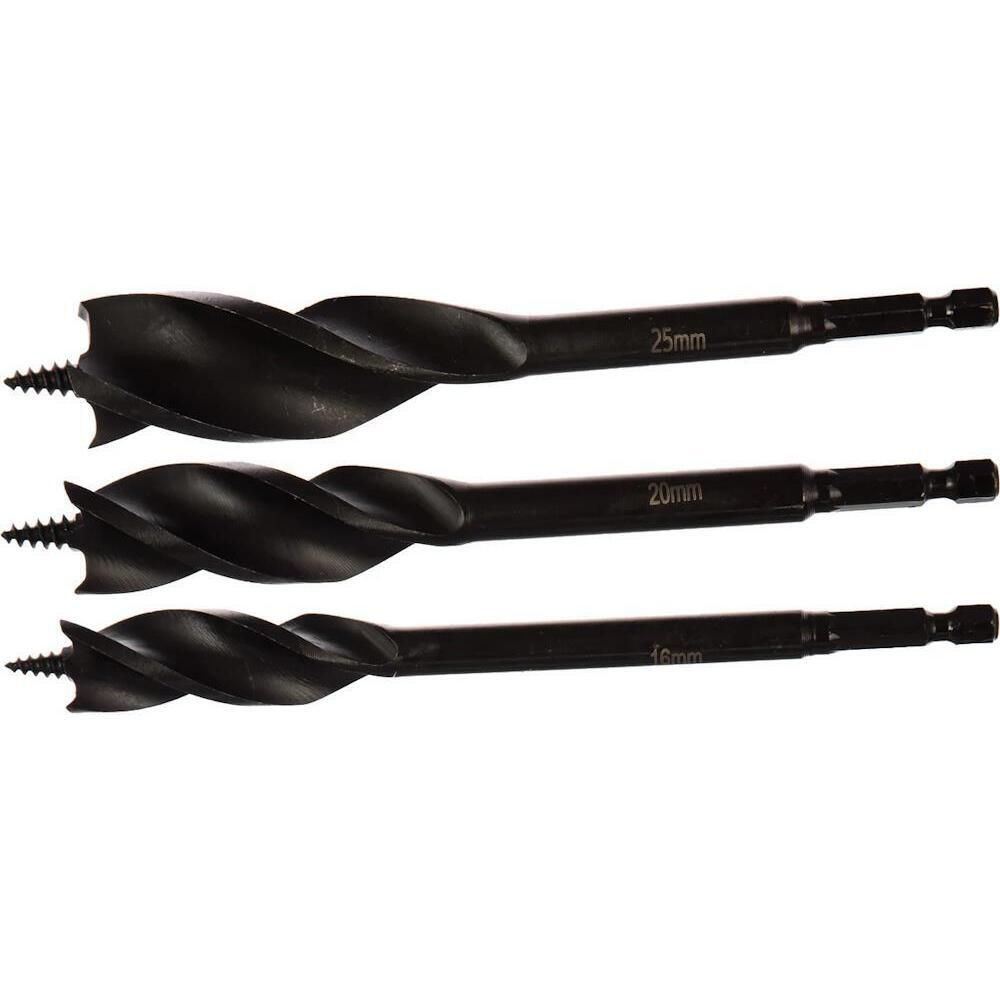 Tip: set de burghie / Destinat: pentru lemn / Număr de subiecți, buc.: 3 / Tip bază: hexagonal