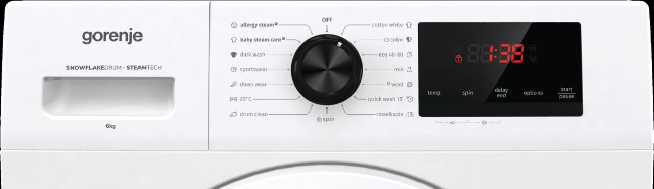 Максимальная загрузка, кг: 6 / Макс. скорость отжима, об/мин: 1000 / Функция пара: да / Класс энергопотребления: A (EU standard)