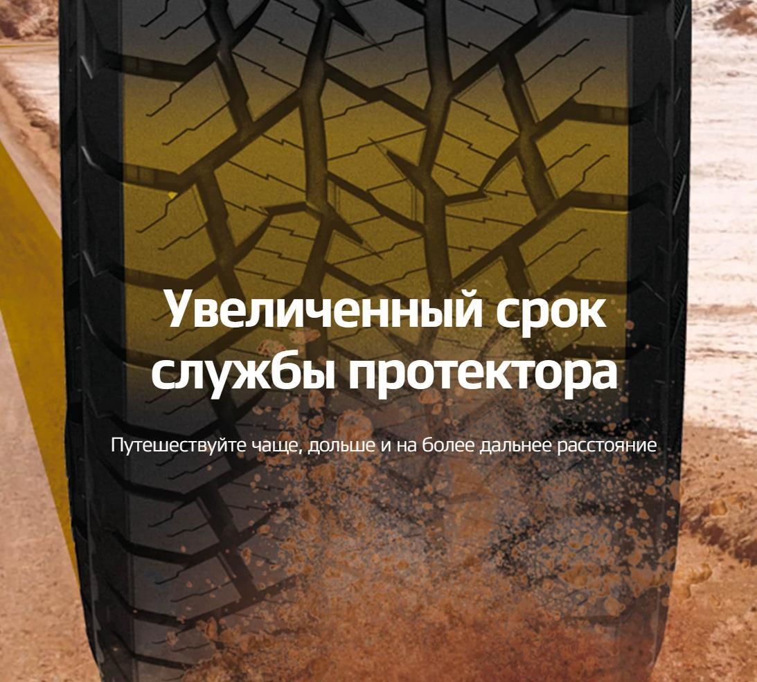 Fiabilitatea anvelopei este asigurată de o întreagă gamă de soluții tehnice. Una dintre ele este utilizarea unui protector cu două straturi. Stratul său de bază inferior se caracterizează prin rigiditate ridicată și rezistență la deteriorarea mecanică locală. Dedesubt se află un întrerupător din oțel, iar numărul de cabluri de carcasă a fost crescut. Drept urmare, chiar și în cele mai dificile condiții, anvelopa demonstrează o fiabilitate excelentă și o durată lungă de viață.