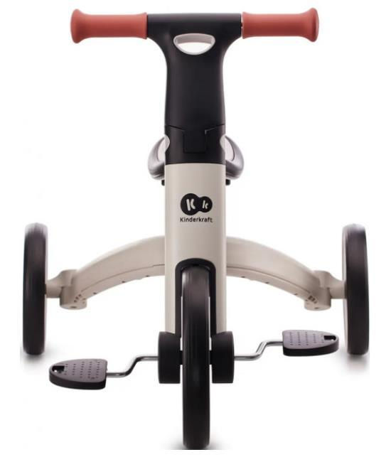 Bicicleta vă permite să îi schimbați ușor și rapid funcțiile. Pur și simplu rotiți roțile și blocați-le împreună până când auziți un clic ușor, apoi blocați-le cu conectorul! Pentru a transforma o bicicletă de echilibru într-o tricicletă, scoateți conectorul și desfaceți picioarele.