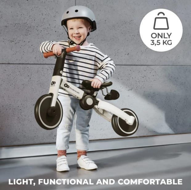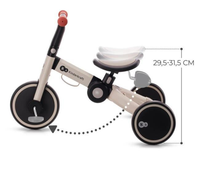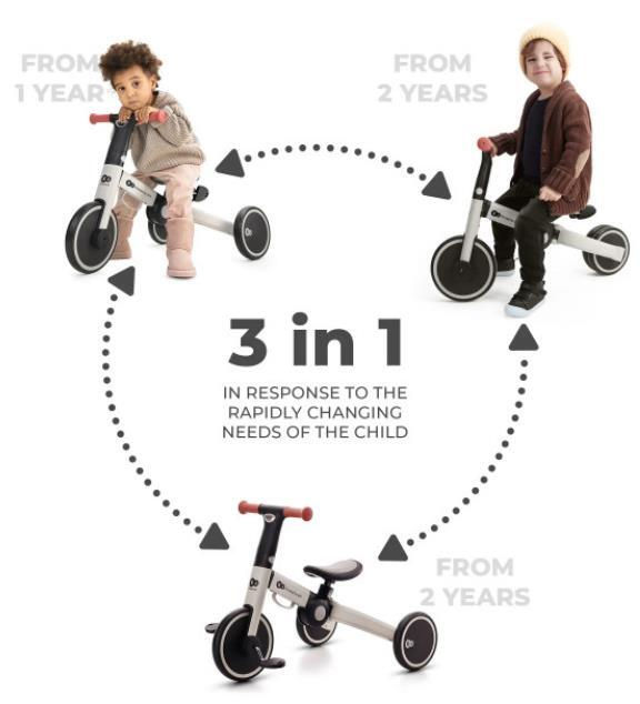 Tricicleta 4TRIKE se adaptează la abilitățile unui copil în creștere: îi permite unui copil de la 1 an să se bucure de călărie. Acest lucru insuflă dragostea pentru exerciții fizice și vă permite să învățați în siguranță să mergeți pe bicicletă. 4TRIKE este o bicicleta unică pentru copii ale cărei funcții pot fi schimbate rapid fără unelte. Când copilul tău decide să exploreze lumea pe propriile picioare, datorită cadrului ușor din aluminiu, poți prinde cu ușurință bicicleta de mânerul special al ghidonului și poți porni în urmărirea micuțului tău călător.