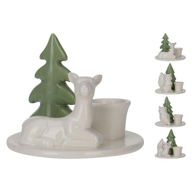 - Модель 02972 Подсвечник керамический Елка и зверь/сова, 10x10x8сm