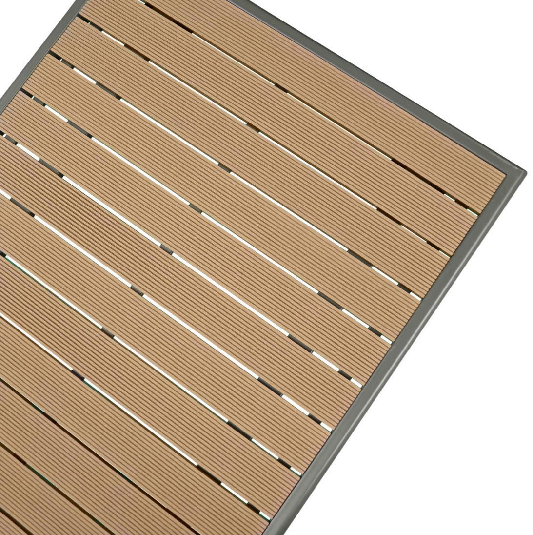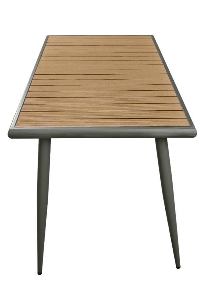 Blat din lemn de rășinoase: Blatul mesei este realizat lemn de rășinoase, rezistent la condiţiile atmosferice. Această alegere asigură o durabilitate pe termen lung.