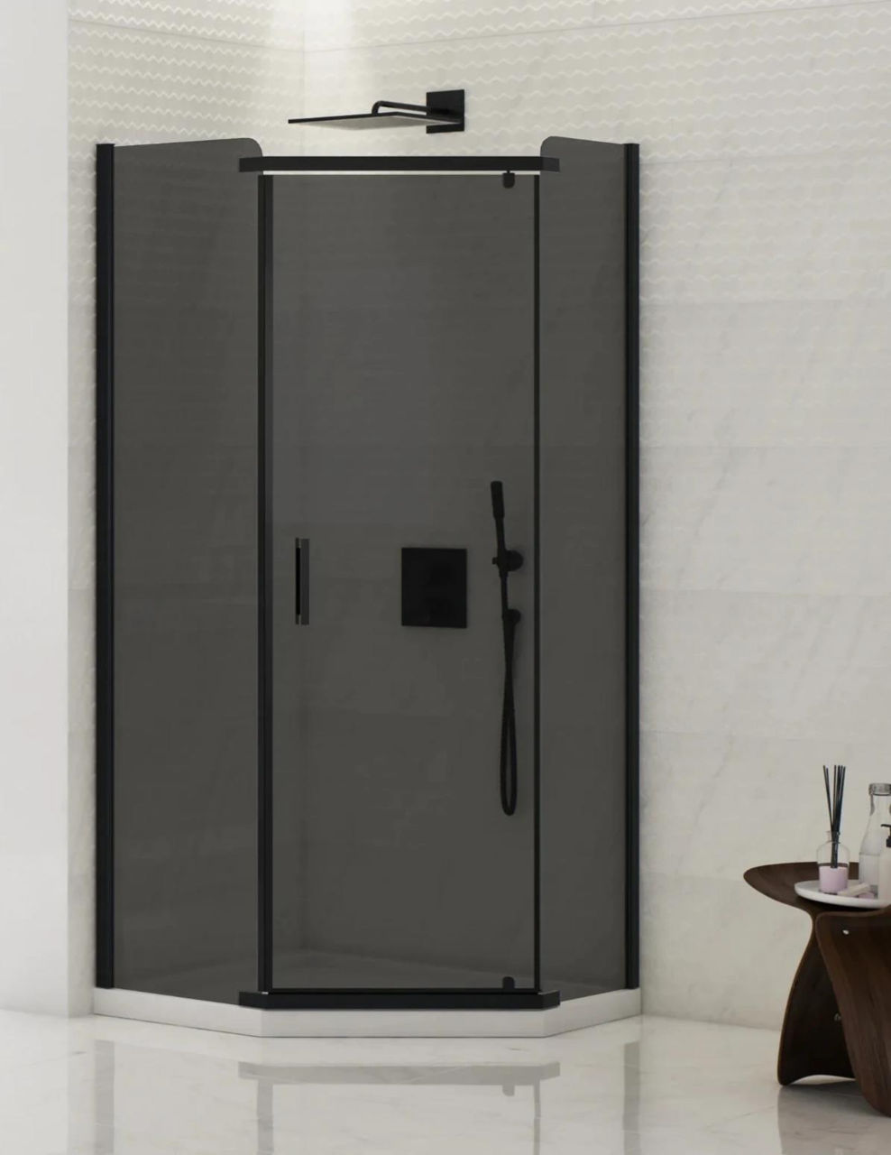 - Model New Komfort Black Pentagonal 90x90x195 Hinged, K-0807