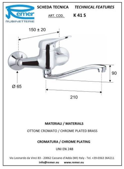 Смеситель для умывальника Remer Kiss 41