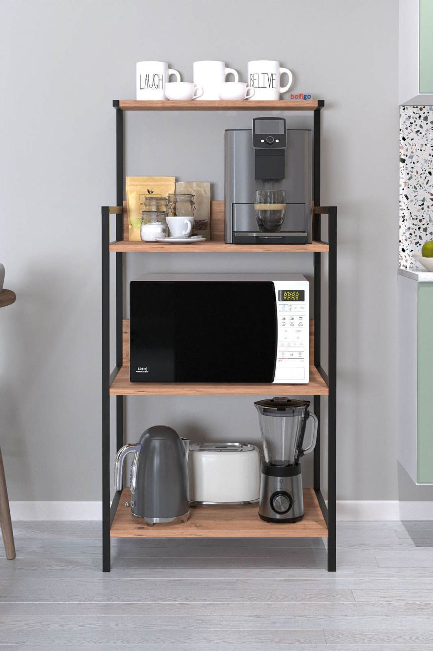 Tip: raft / Material: metal / lemn / Culoare: maro / negru / Brand: Promstore
