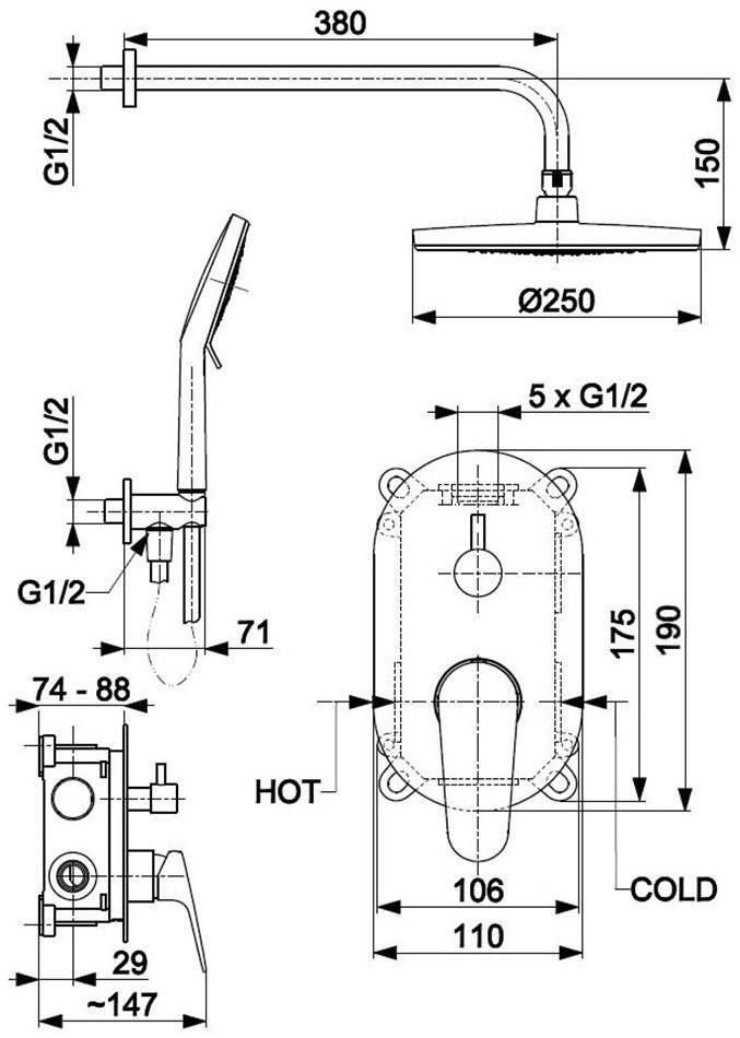Set pentru duș kfa armatura Otava Black встраиваемый в стену черный