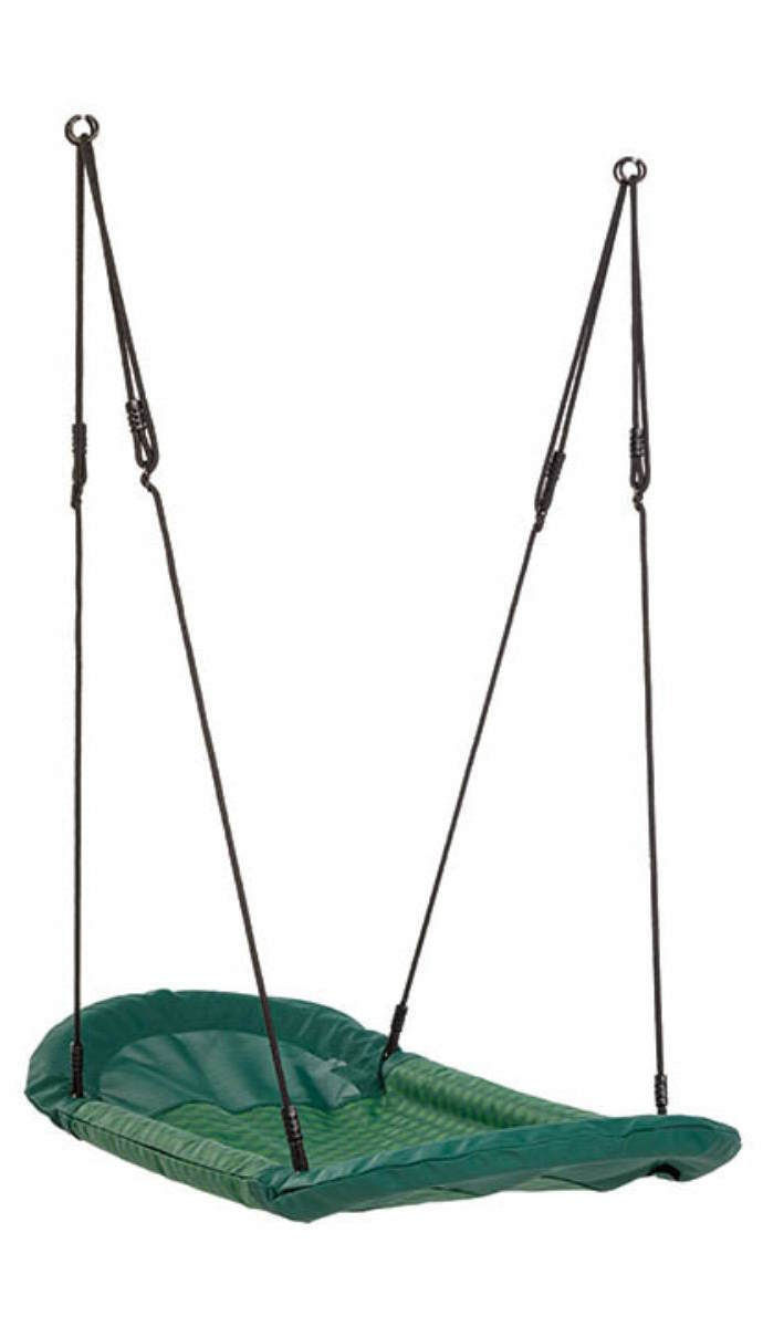 - Altele suspensia a patru frânghii împletite îi conferă leagănului un aspect impresionant, iar lungimea acestuia este ușor de reglat. Cadrul din oțel este complet acoperit cu material rezistent și plăcut la atingere, prin care apa se scurge ușor. Inelele și elementele de fixare sunt realizate din oțel galvanizat. Cusăturile sudate de pe frânghii sunt realizate din plastic PP negru. Scaunul larg creează senzația de a fi într-o barcă care se balansează. Leaganul poate rezista la o greutate de pana la 150 kg Suspendat la o inaltime de: 2 - 2,40 m