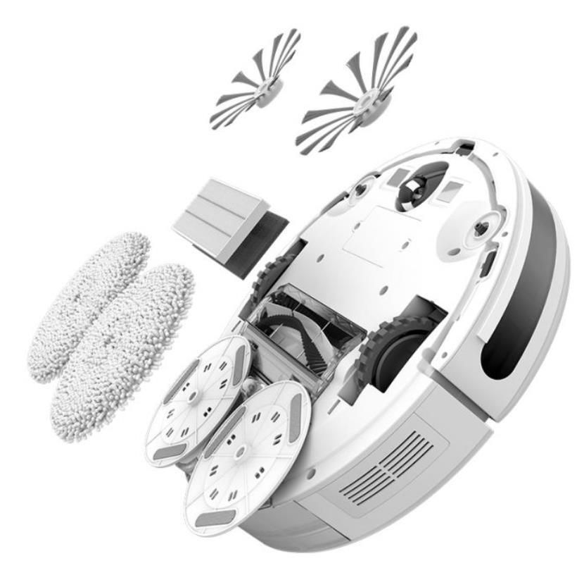 - Accesorii în set perie rotativă externă(x2),fibră pentru curățare umedă,perie podea / covor