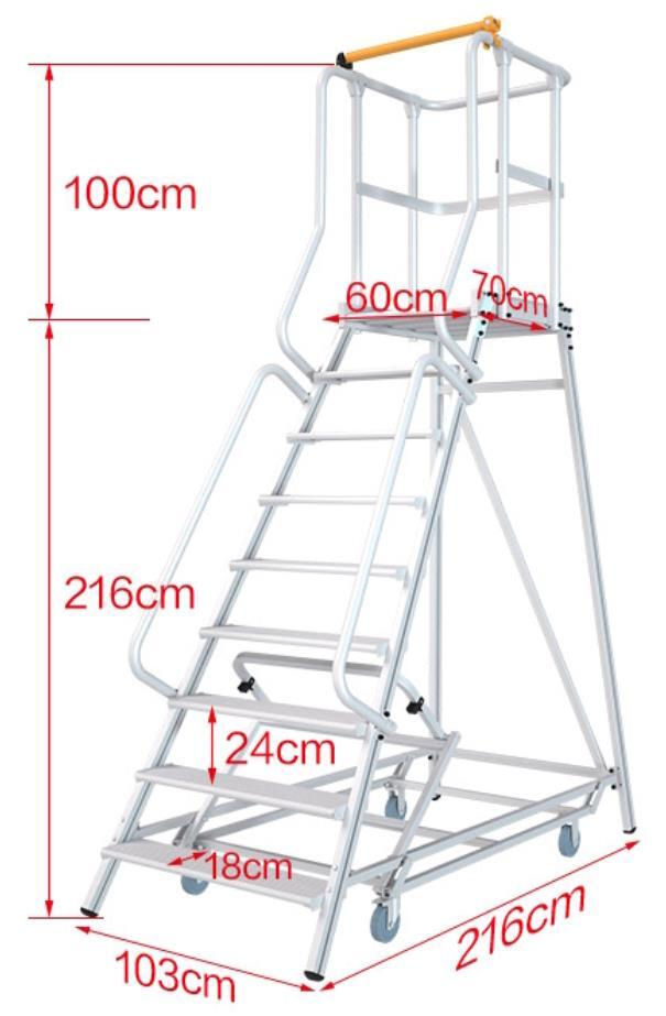 • Patru roți fac platforma scărilor ușor de transportat.