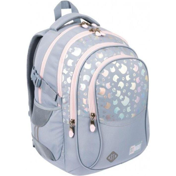 • Compartimente Exterioare: Ghiozdanul are 4 compartimente exterioare cu fermoar și 2 buzunare elastice laterale pentru sticle.