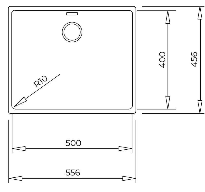 Materia primă: tegranit / Numărul de vase: 1 / Dimensiuni (LxA), mm: 556x456 / Culoare: negru