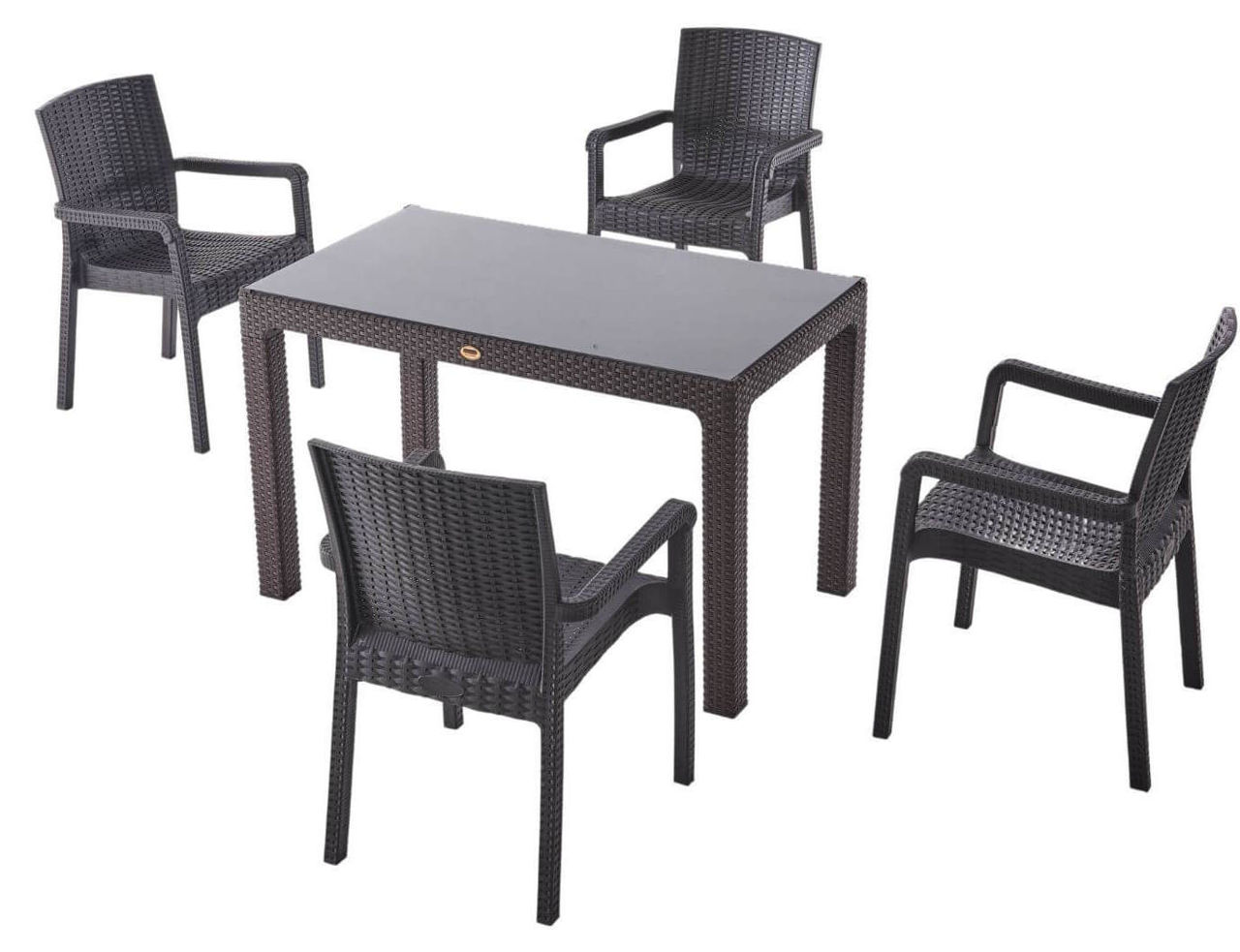 - Model Masă Rattan cu sticlă, 120x70x75, Maro
