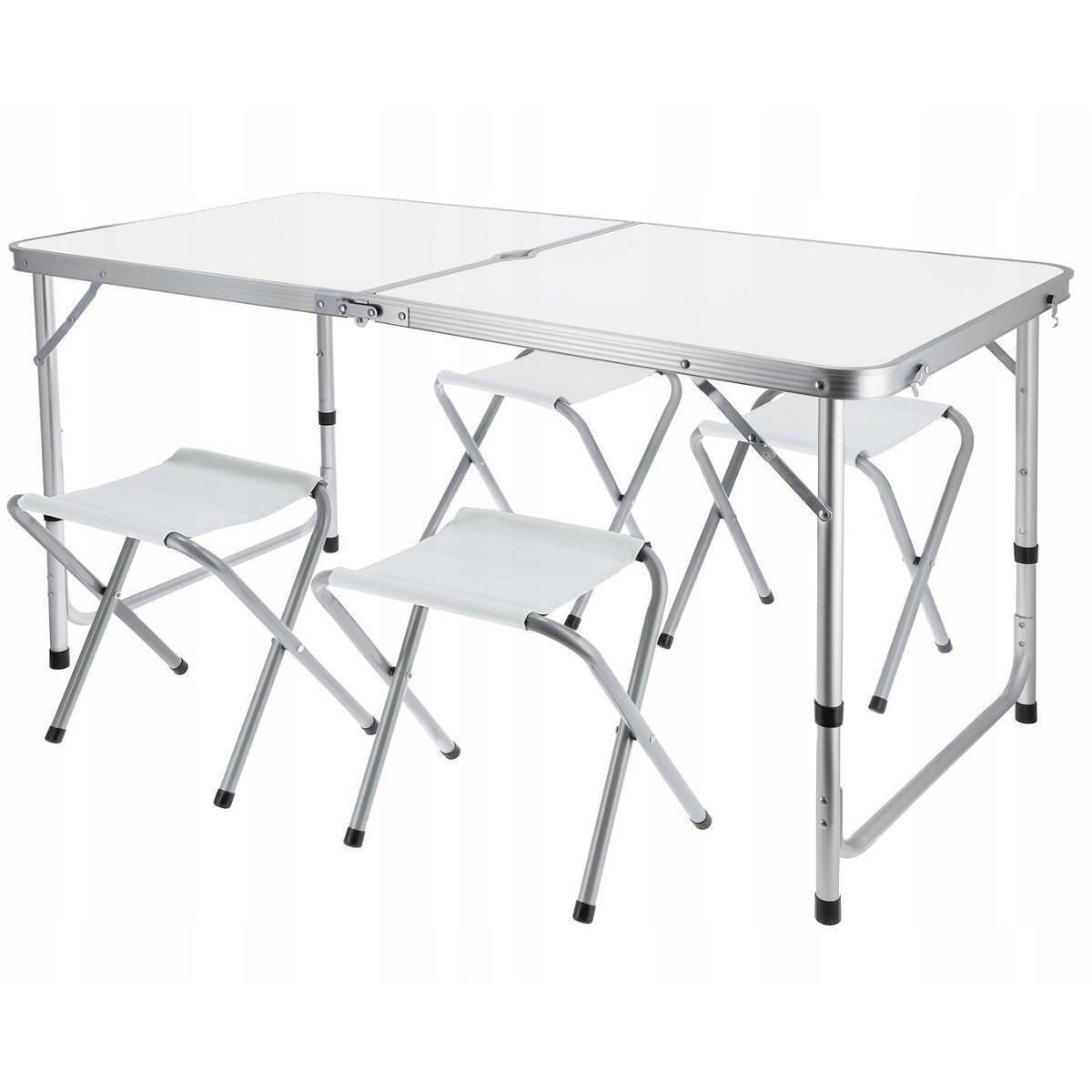 - Model OM-258891 Masa de camping pliabila + 4 taburete, Alb