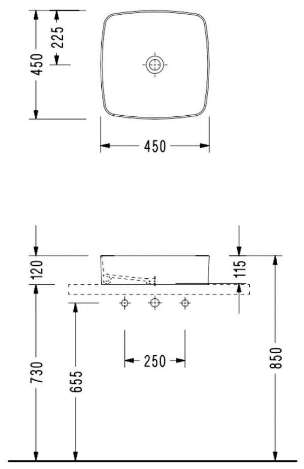 Lavoar Serel Slimline 450x450x120 квадратный, накладной