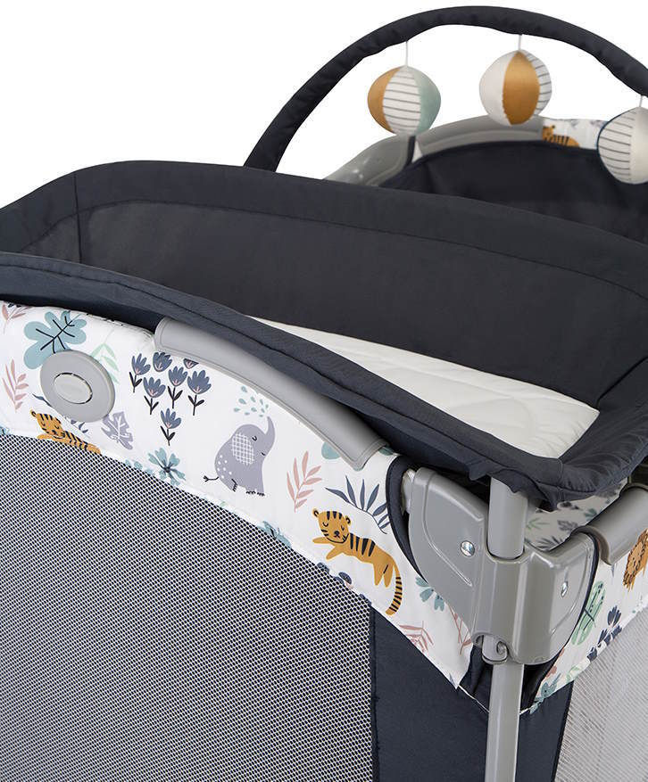 Tip: ţarc-pătuc / Capacitate maximă de cântărire, kg: 15 / Material: metal / plasa / stofă / plastic / Dimensiuni (LxlxA): 127,5х71х109