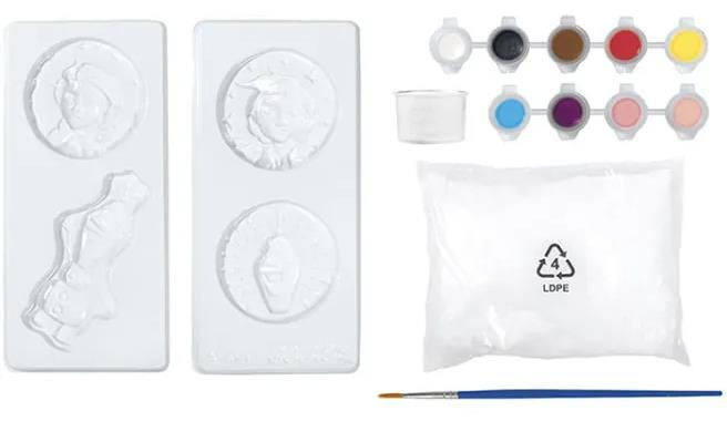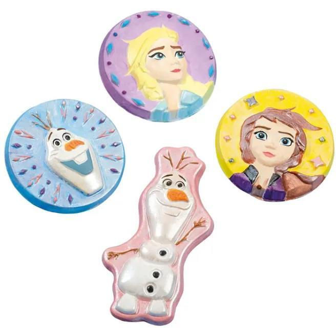 Kit complet de modelare în ipsos: 4 figurine Frozen, ipsos, 9 culori de vopsea, pensulă și pahar de măsurare. Tencuială cu uscare rapidă, timp de uscare 24 de ore.