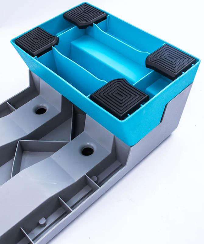 Cele două picioare detașabile vă permit să reglați rapid înălțimea platformei și asigură o depozitare compactă.