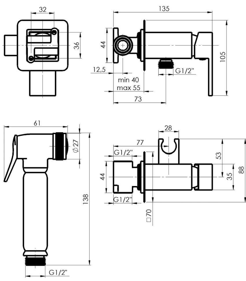 Tip: monocomandă / Tip montaj: incorporabil / Scopul: pentru bideu / Material carcasă: alamă