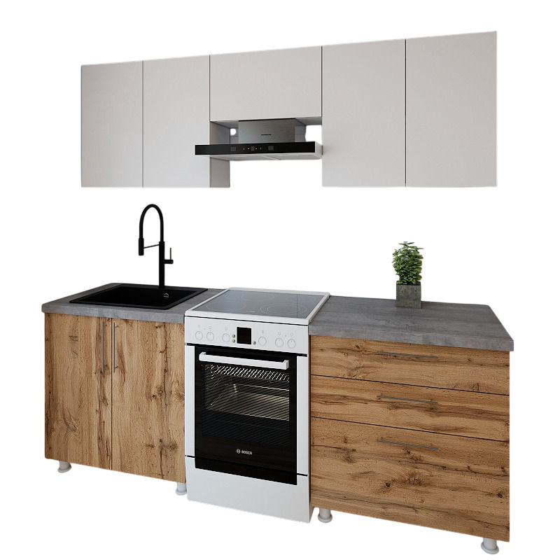 Mobilă pentru bucatarie Smartex (30058) K2 220сm Alb+Stejar inchis