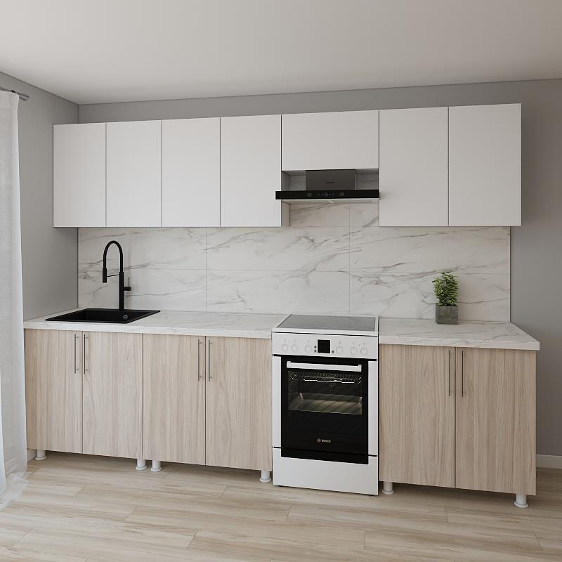 Tip: modulara / Structura: liniar / Componența setului: dulap superior;dulap inferior / Lungimea, mm: 3000