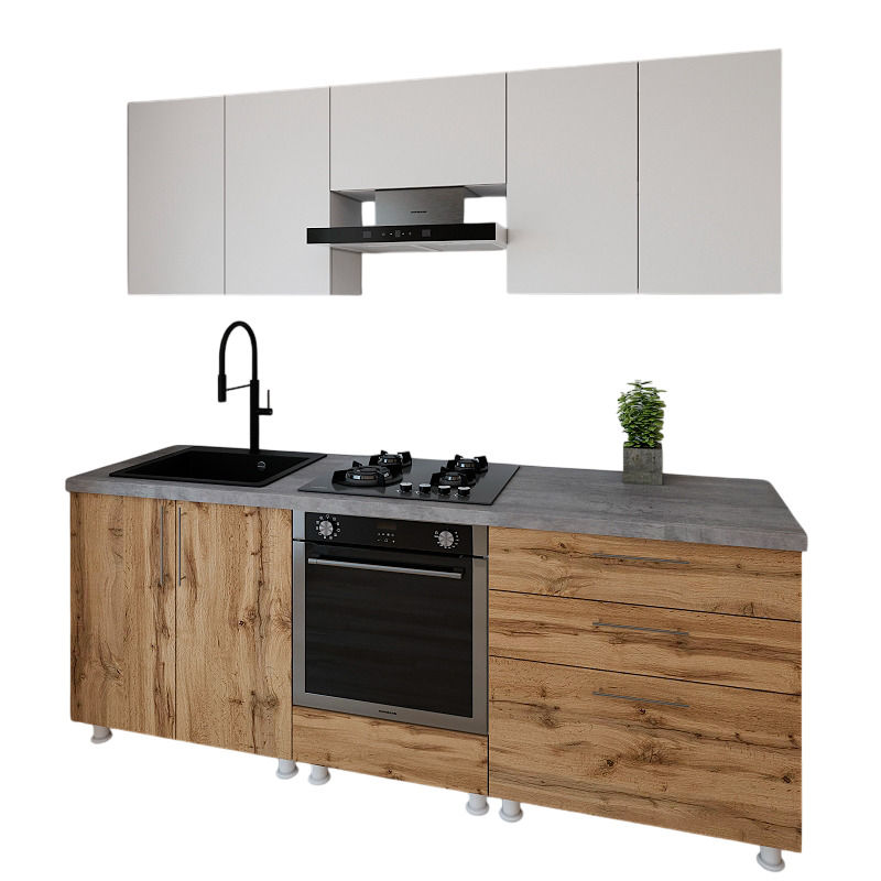 Mobilă pentru bucatarie Smartex (30142) K4 220сm Alb+Stejar inchis