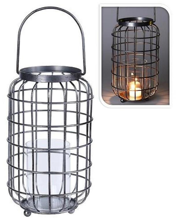 - Model 42659 Sfesnic metalic Felinar+pahar D18cm x 34cm cu maner