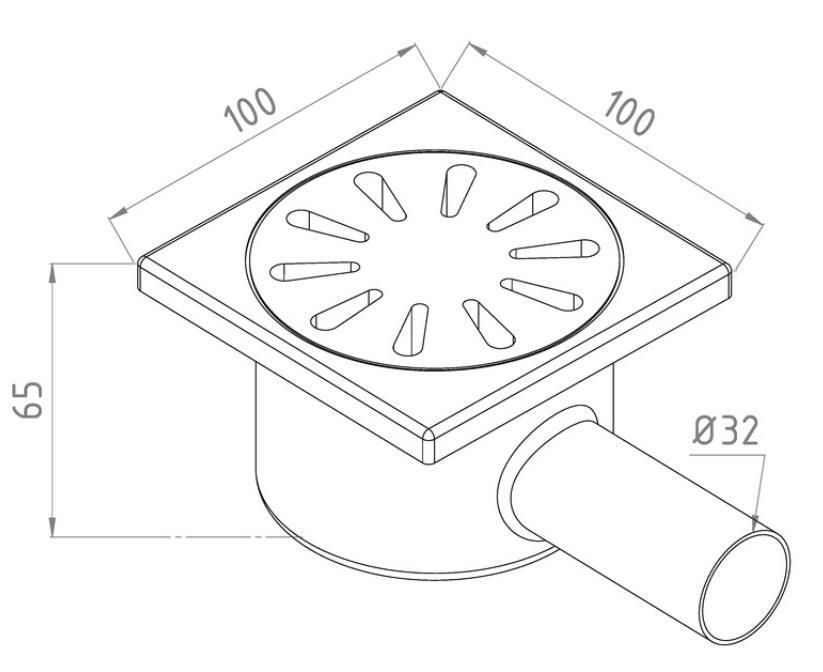 Trap de duș GPD YSZ07 Sifon de pardoseala orizontal corp FULL INOX D. 32 x 90° (100 x 100 x 65 mm)