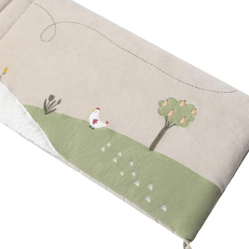 Oferă-i bebelușului tău nopți liniștite și sigure cu protectia letarala de pătuț "Viata la Ferma". Realizata din velur moale, cu 3 panouri brodate cu motive din viața la fermă, această protecție adaugă un strop de farmec rustic camerei copilului.