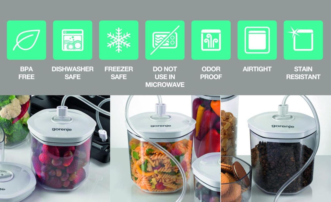 - Inclus în set saci vidați (10 buc), 3 recipiente, tub