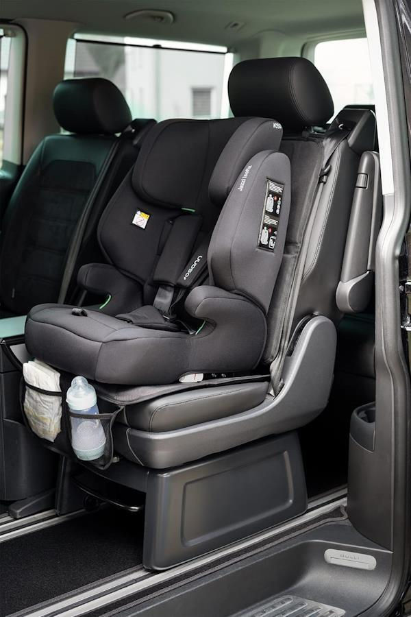 Baza se atașează ușor de tetiera scaunului auto sau de bancheta din spate folosind un sistem de clipsuri și o fixare suplimentară. Datorită adânciturilor, poate fi utilizată cu scaune cu sistem Isofix.