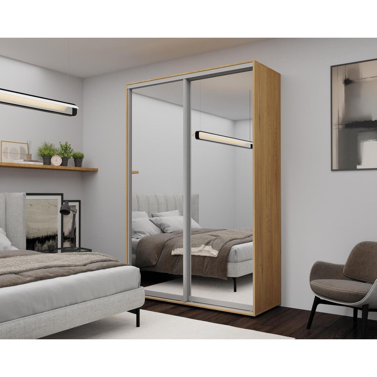 Dulap Nex Home Dulap cu uși glisante, 160x60x220cm, Oglinda, Sonoma