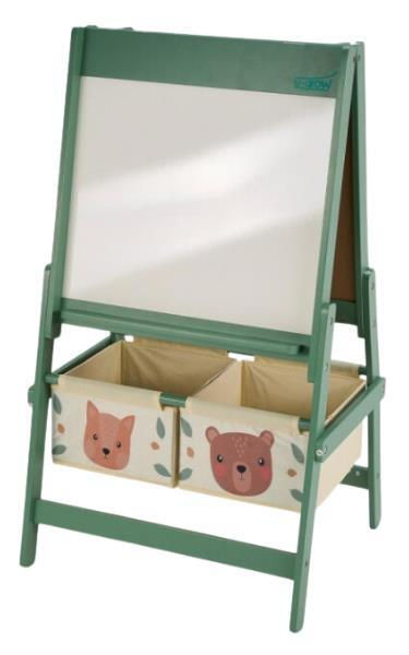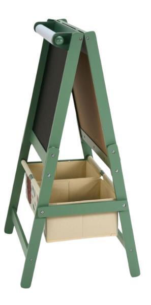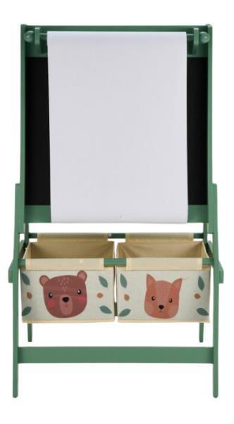 Suprafață dublă: o față albă pentru desen, cu rolă de hârtie inclusă, și o față neagră pentru desen sau scriere cu cretă.