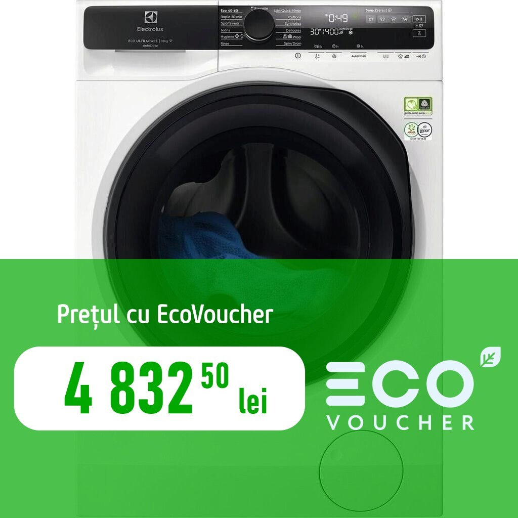 - Programe ECO,spălare rapidă,spălare delicată,denim,abur,sintetice,sport,bumbac,lână