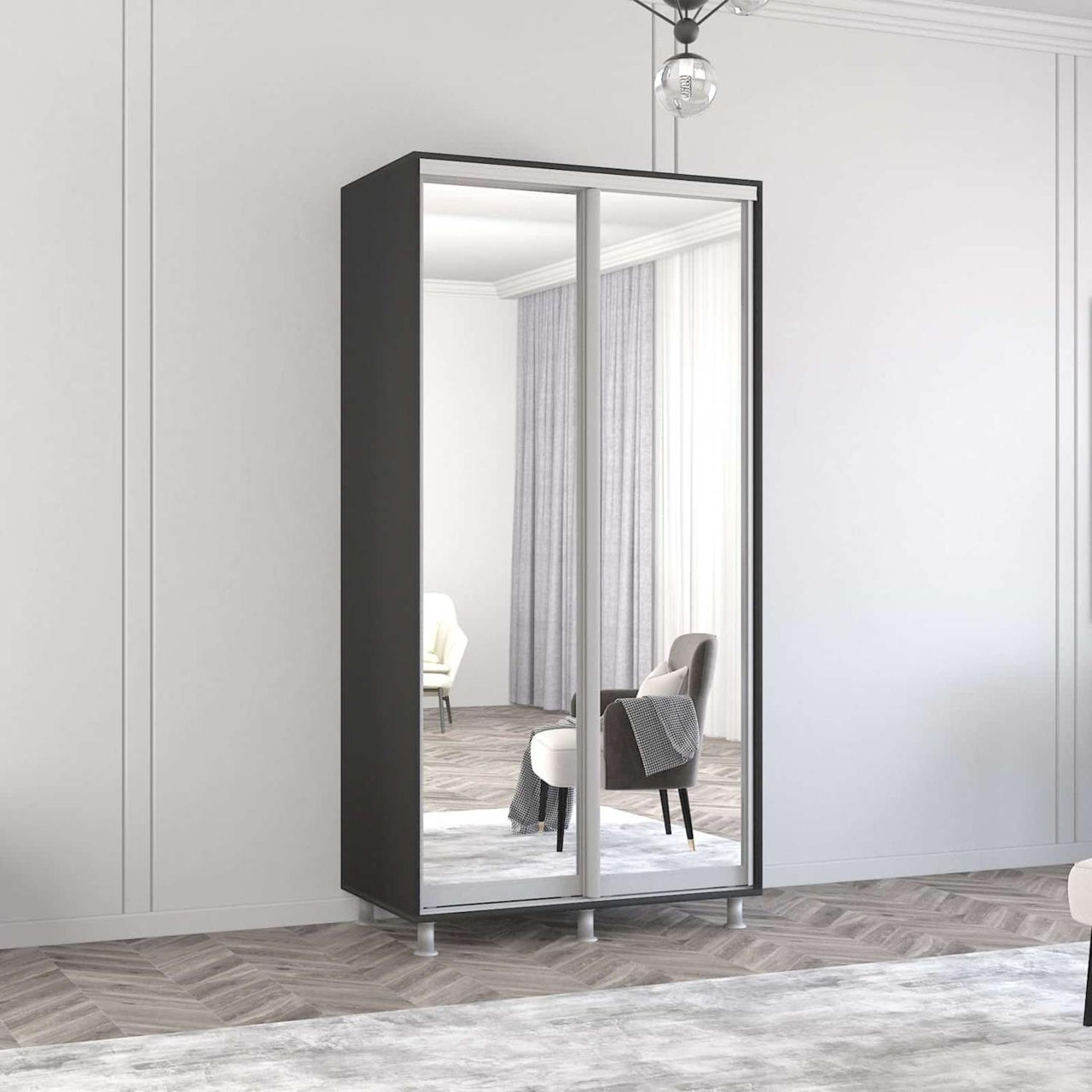 Dulap Mobildor-Lux Aron-S uși glisante din oglinzi (110x60x200H cm) Anthracite
