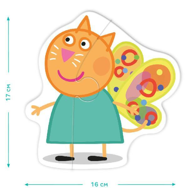 Personajele preferate ale desenului animat pentru copii se joacă, se schimbă în costumele lor preferate și se îmbrățișează. Ce familie drăguță! Piesele de puzzle sunt mari și sunt realizate din carton rezistent, astfel încât sunt atât de confortabile de ținut în mână.