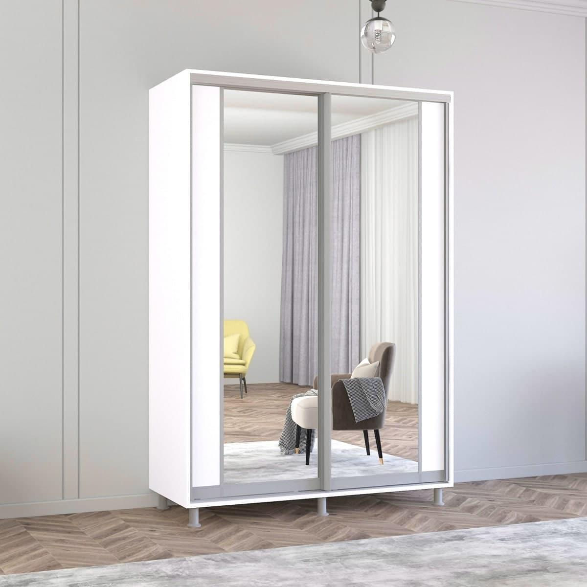 Шкаф Mobildor-Lux Aron-S uși glisante din PAL cu oglindă vertical (150x60x210H cm) Alb Brilliant