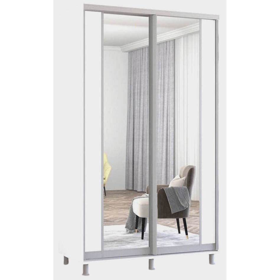 Dulap Mobildor-Lux Aron-S uși glisante din PAL cu oglindă vertical (130x60x220H cm) Alb Brilliant