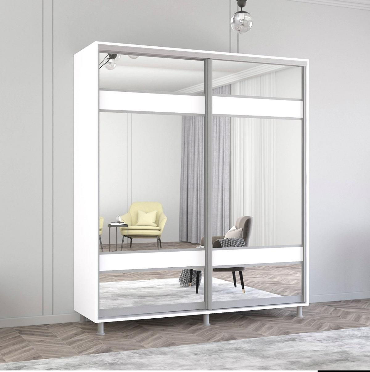 - Model Aron-S uși glisante din PAL cu oglindă zebra (200x60x210H cm) Alb Brilliant