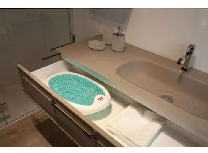 Подставка для ванной, которая может быть размещена в ванне для взрослых, обеспечивая комфортное купание для ребенка.