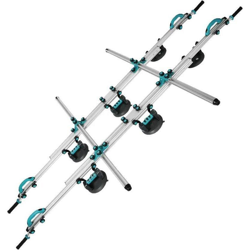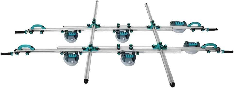Inovația cheie este sistemul "AUTOFIX": setul este echipat cu 6 ventuze cu acumulator și pompă automată. Aceste ventuze monitorizează constant presiunea și, dacă detectează o pierdere de vid (comună pe suprafețe texturate), se repompează automat pentru a menține o prindere sigură. Mânerele și ventuzele sunt reglabile pe lungimea profilului, permițând o adaptare perfectă la orice format de placă.