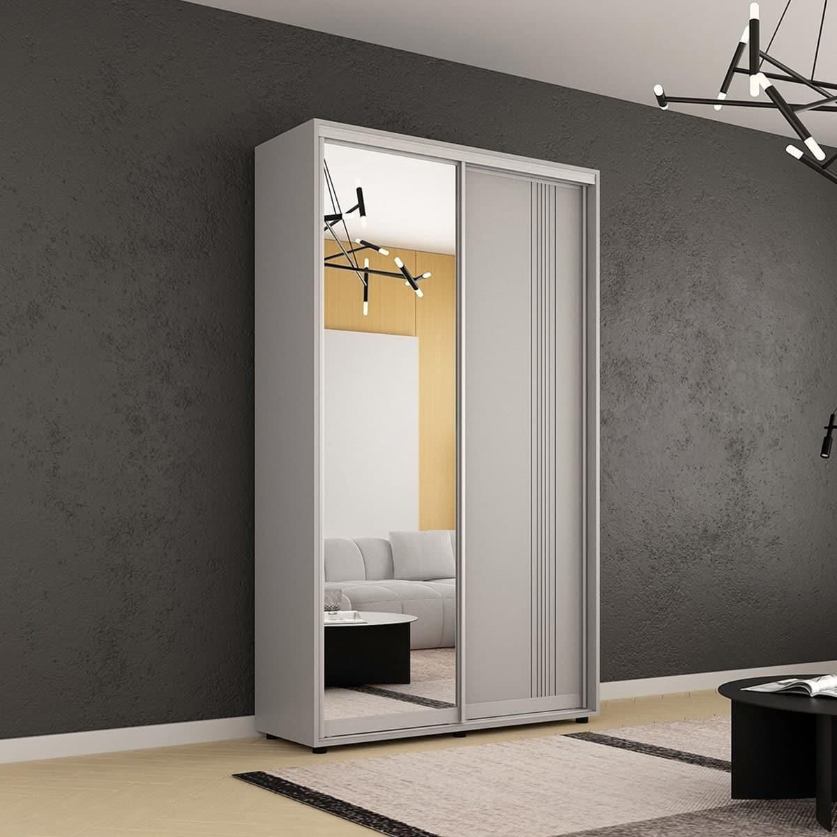 Шкаф Mobildor-Lux Compact uși glisante Oglindă + PAL cu ornament linii (130x45x220H cm) Grey