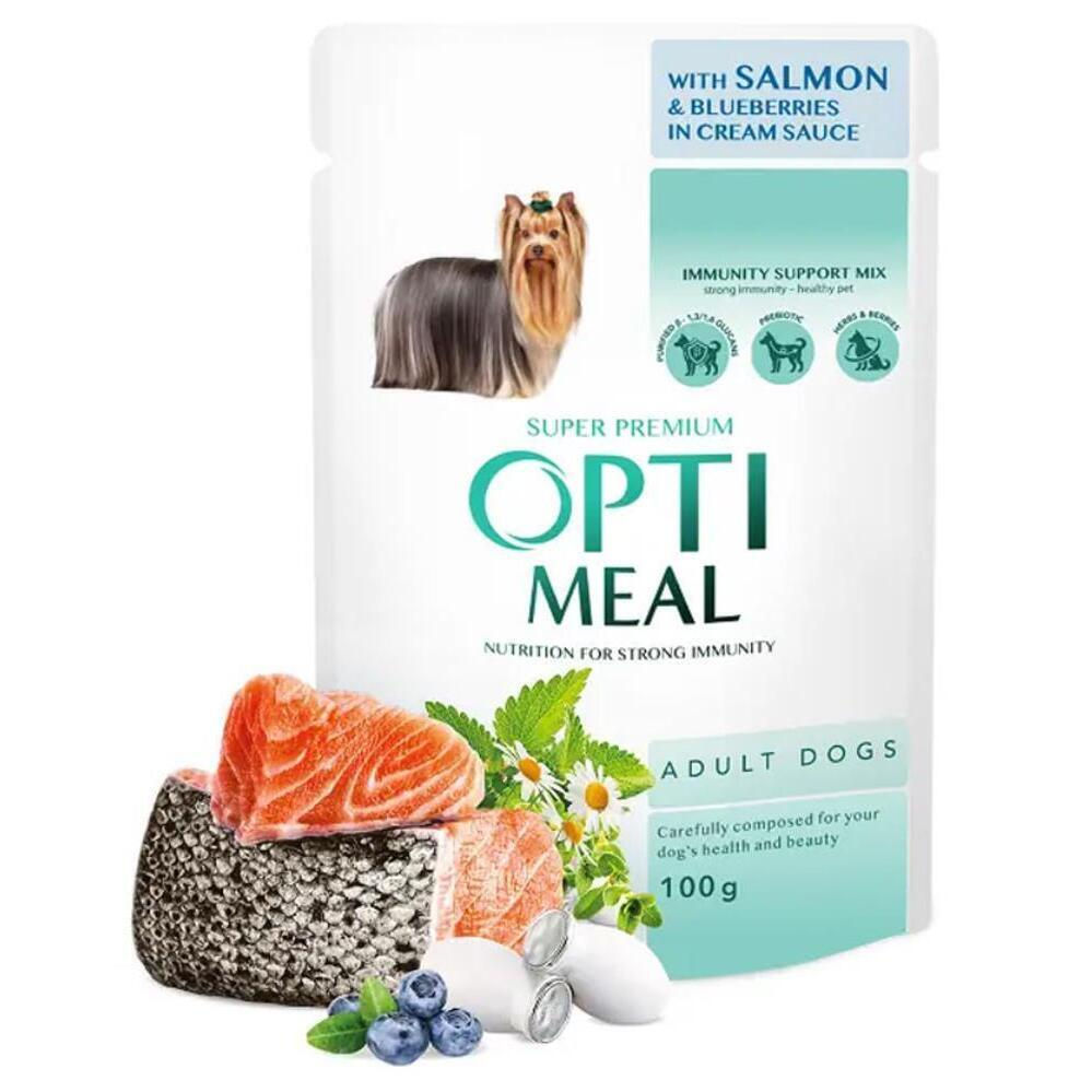 Hrană pentru animale de companie Optimeal 24231048 Plic caini somon-afine sos cremos 12x100g