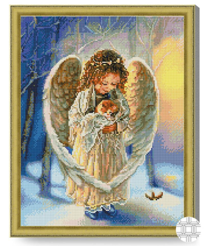 Tablou pe numere Art Gallery QB204100 Mozaic cu diamante patrate 40x50cm Ingeras in padurea de iarna