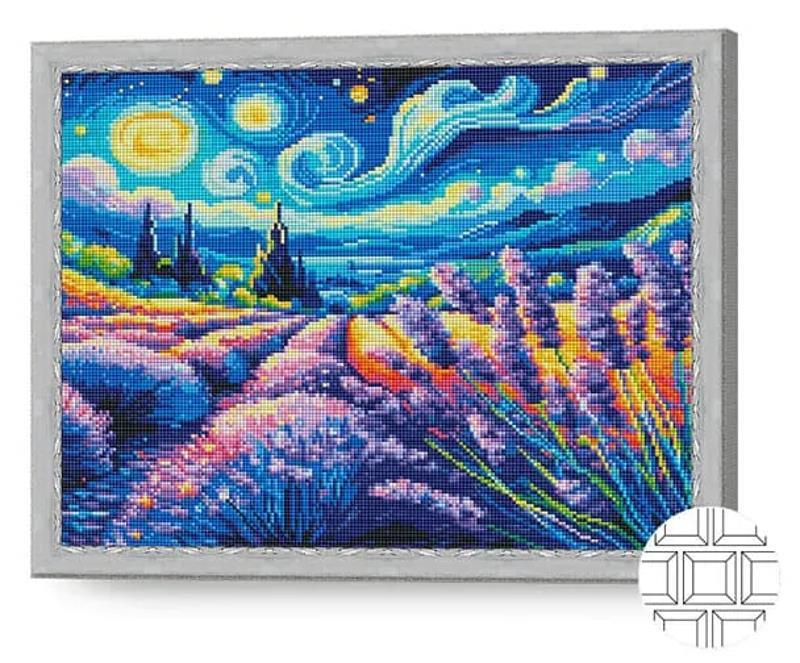 Tablou pe numere Art Gallery QB206606 Mozaic cu diamante patrate 40x50cm Noapte instelata si un camp de lavanda