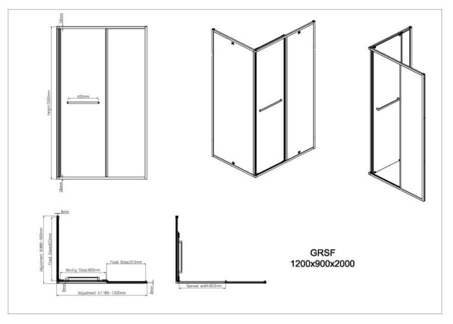 Cabină de duș miscellaneous GRSF 90x120x200 BRUSHED MATTE NICKLED 8mm